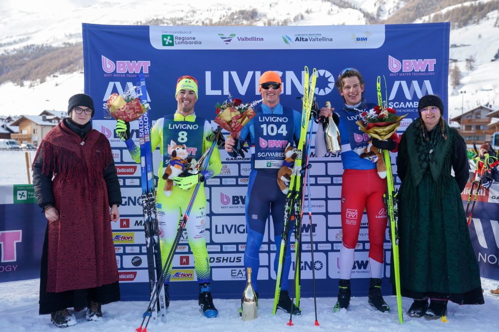 BWT Sgambeda più combattuta in campo maschile, dove un gruppetto di atleti, guidati dall’italiano Paolo Fanton, in forza al Team Futura A.S.D. White Fox, ha animato la giornata con una lunga fuga, decisiva già a metà gara. Gruppo che si è via via sgranato con l’avvicinarsi del traguardo, lasciando che fossero lo stesso Fanton e il kazako Denis Volotka a contendersi la vittoria finale. Successo risicatissimo, alla fine, per Volotka, che con il tempo di 01.03.31 ha preceduto soltanto di un paio di secondi Fanton. Mentre, poco distante, il tedesco Jakob Walther, dello Ski-Willy Marathon Team, batteva il francese Gaspard Meyer per il terzo gradino del podio, a testimonianza della grande internazionalità di questo appuntamento.